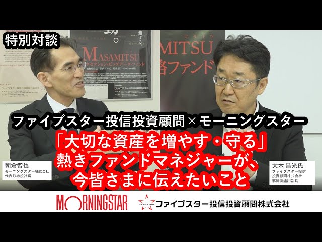 YouTubeへ遷移します 2021.03.02 「大切な資産を増やす・守る」 熱きファンドマネジャーが、今皆さまに伝えたいこと 【MASAMITSU日本株戦略ファンド】ファイブスター投信投資顧問×モ ーニングスター 特別対談